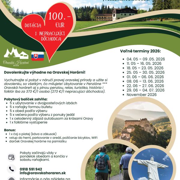 Penzión *** Oravská horáreň spolupracuje s ubytovacím portálom www.megaubytovanie.sk. Dovolenka na Slovensku u nás bude pre Vás skutočným zážitkom. Rezervovať si u nás môžete aj ubytovanie pre školy v prírode, prázdniny, sviatočné pobyty aj na Silvestra.